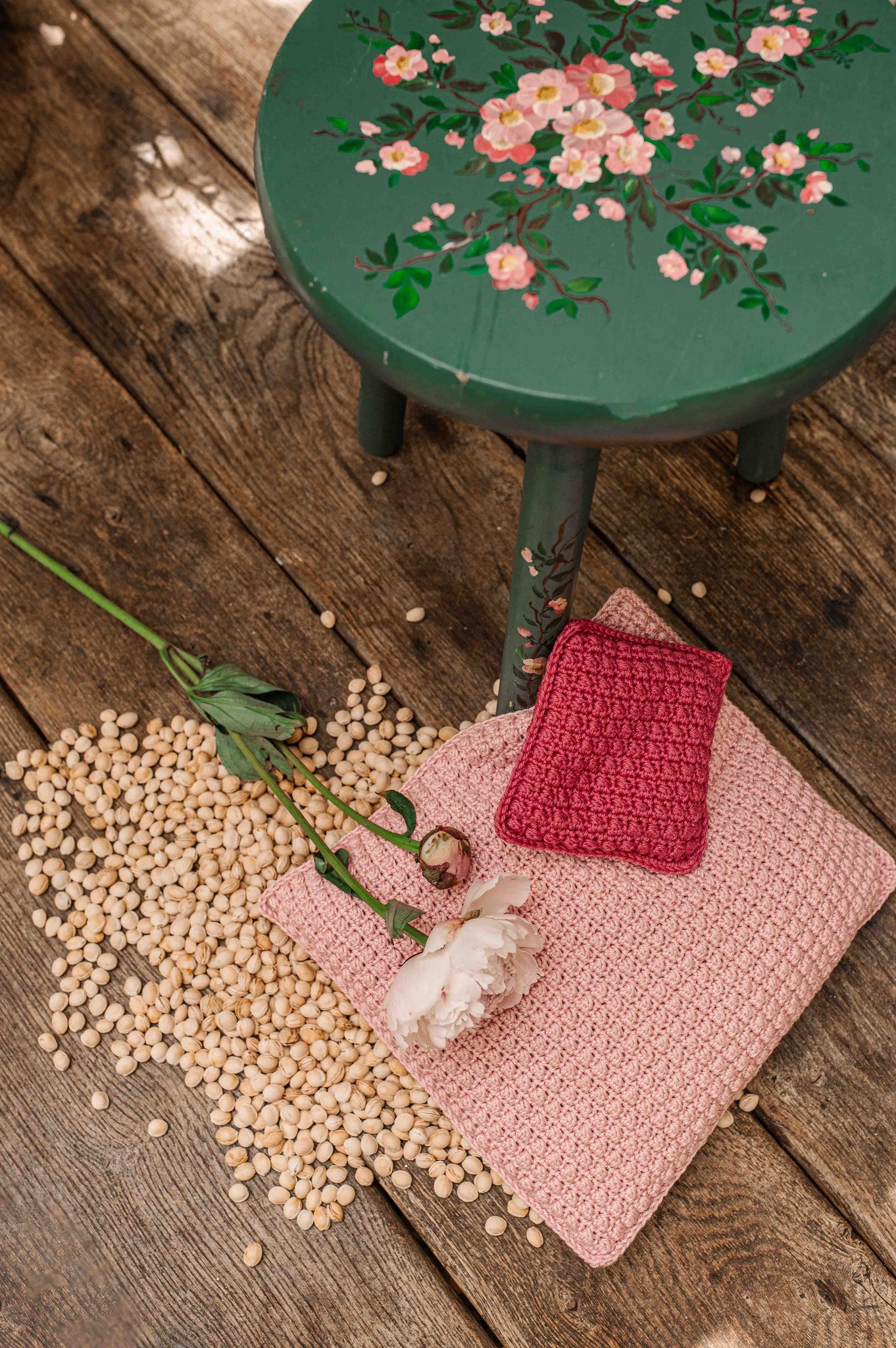 Haakpakket KersenpitkussenWarmte helpt om mijn gevoelig zenuwstelsel te ontprikkelen. Ik en mijn kersenpitkussentje zijn daarom dikke vrienden. Omdat zo'n kussentje doorgaans behoorlijk saai is, maakte ik mijn eigen versie in kleuren die perfect in mijn woonkamer passen. Zo kan ik het met een gerust hart rond laten slingeren, en is het altijd binnen bereik. Gewoon even opwarmen in de magnetron.